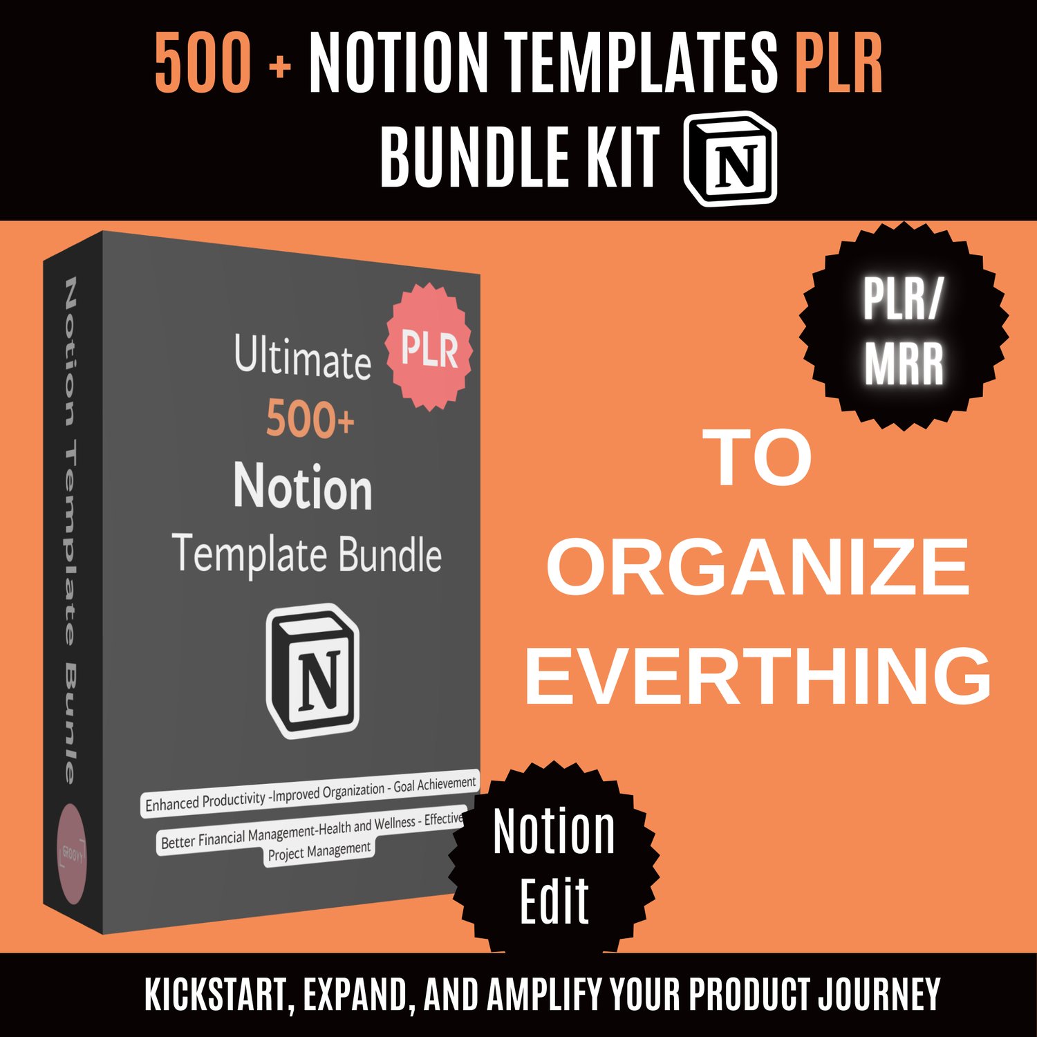 You are now about to discover the Ultimate 500+ Notion Templates PLR Bundle, never been launched before. Your new comprehensive Notion template collection that will revolutionize your productivity and organization.