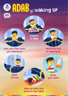 This adab (etiquette and manner) poster teaches kids what should we do when waking up in Islam. It will help kids to introduce and remind them about good manners based on sharia.