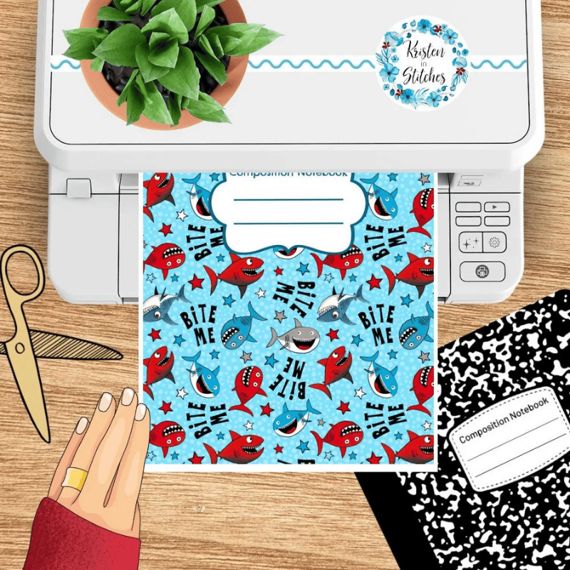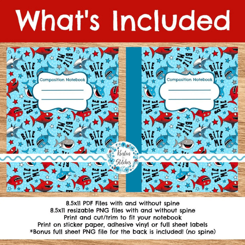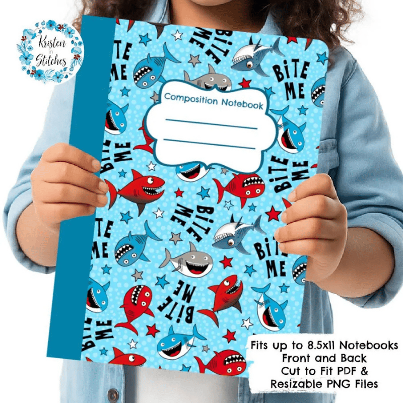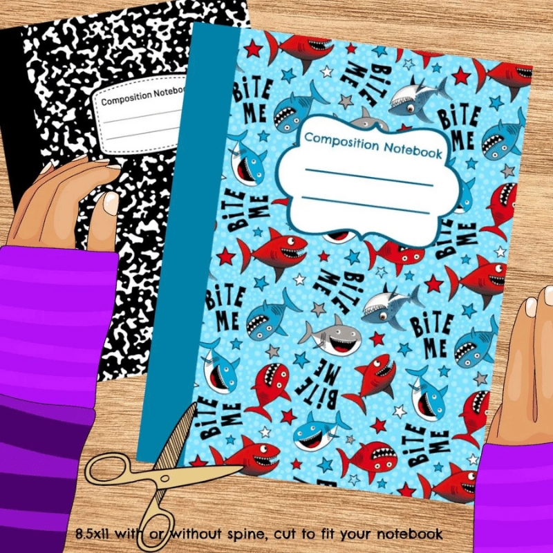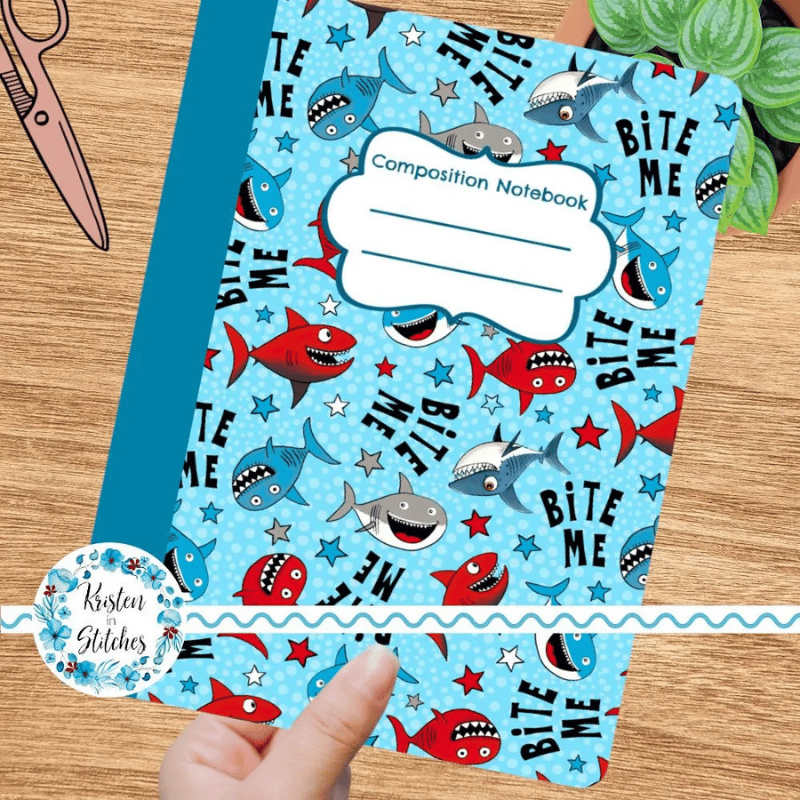 Composition Notebook Cover, Printable Resizable PNG, PDF, Bite Me Sarcastic Sharks
