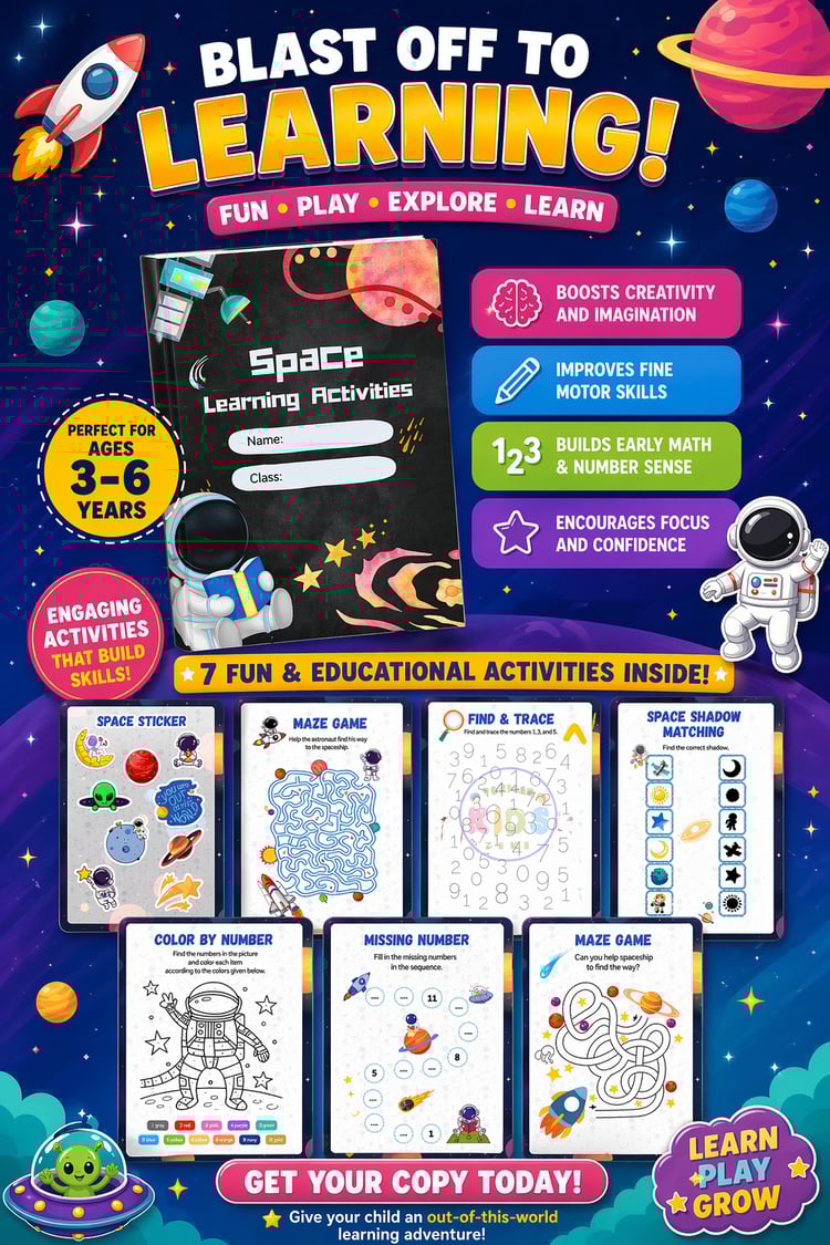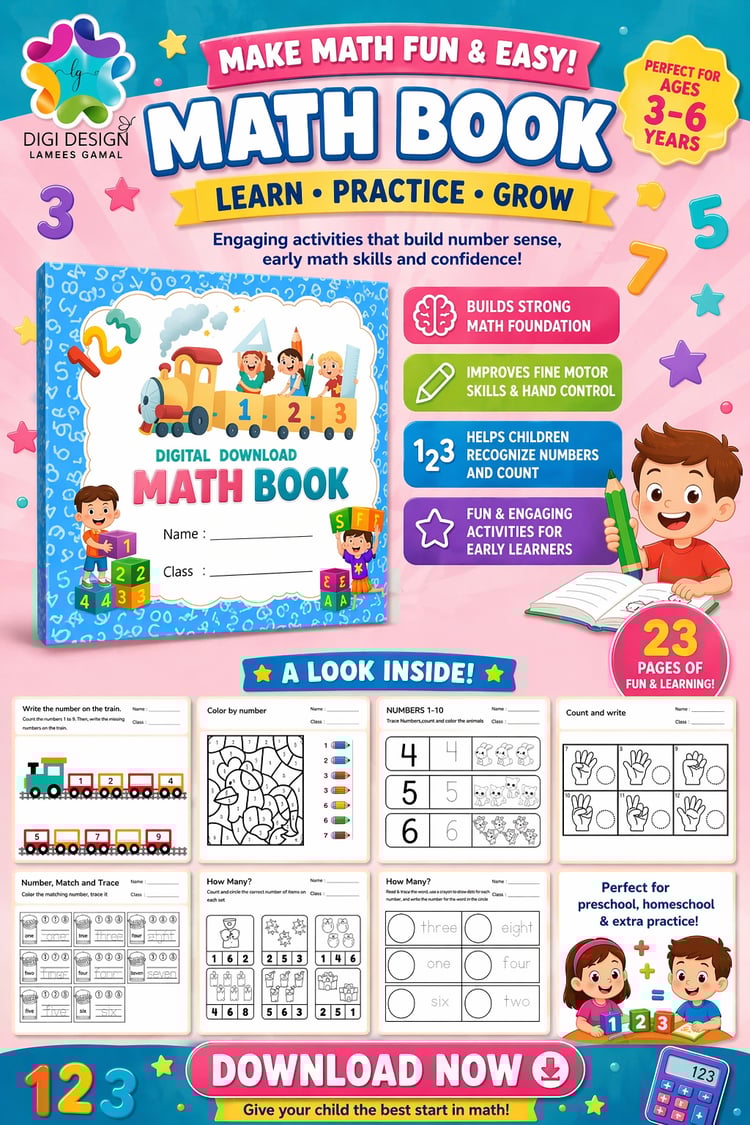 • تصميم مبهج: ألوان زاهية وتنسيق احترافي يشجع الطفل على التركيز.