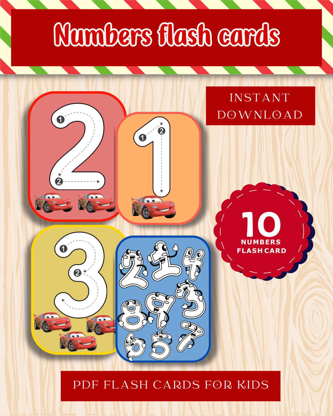 Disney Cars Numbers Flashcards - Printable Tracing & Counting Activity for Kids