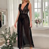 Sexy lingerie women's deep V-slit lace patchwork suspender long skirt set