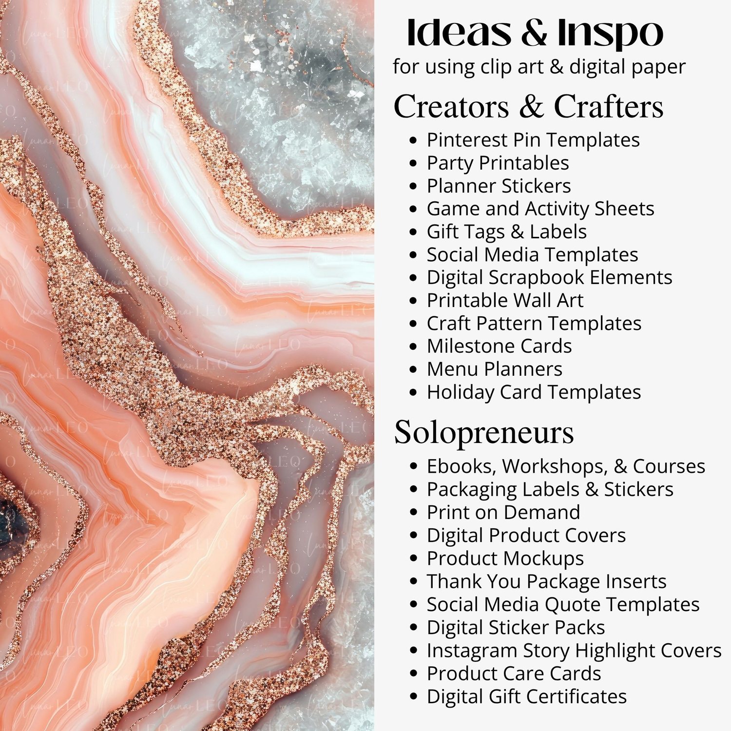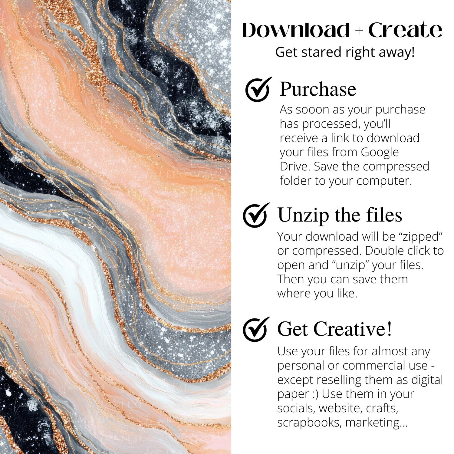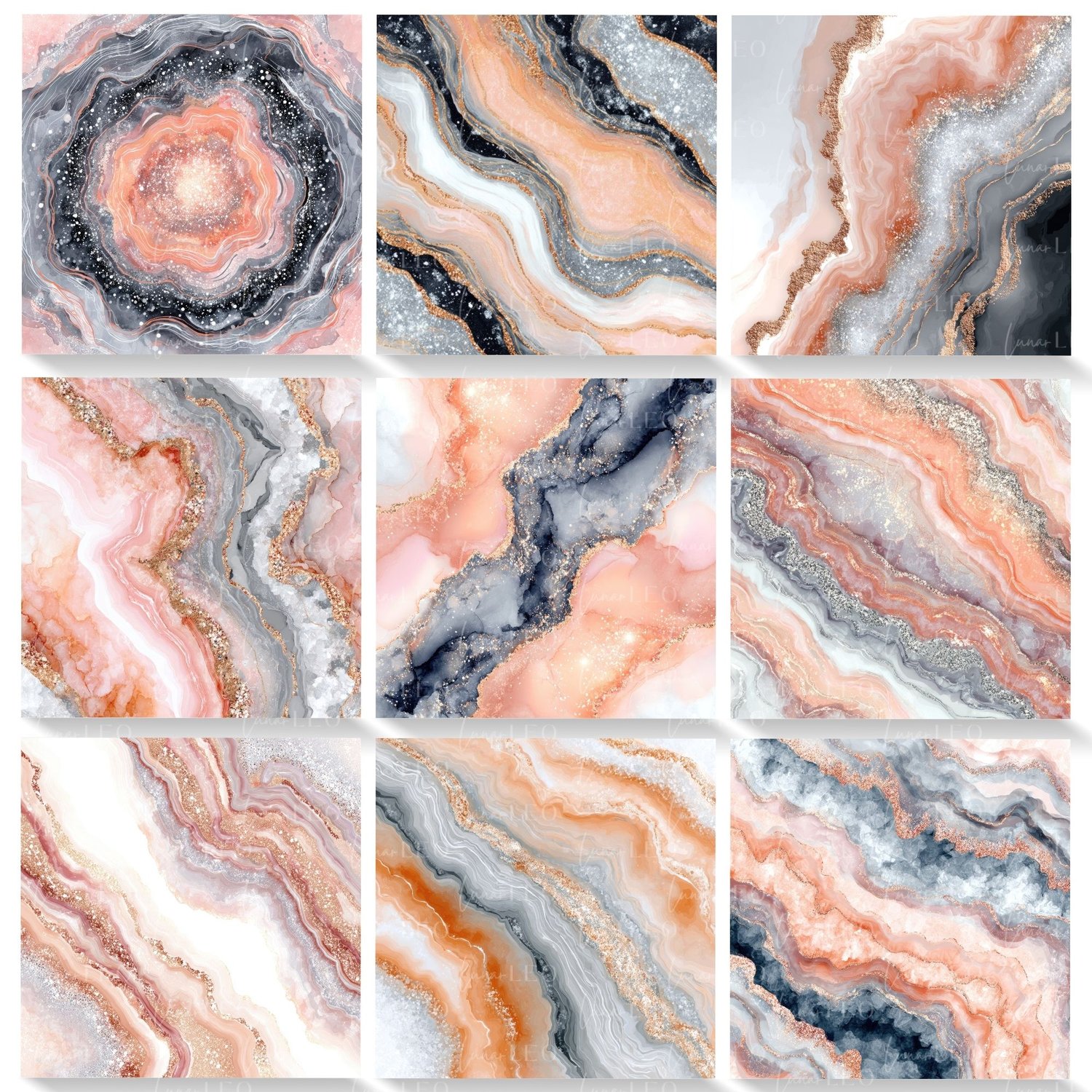 Elevate your creative projects with this Peach Geode Digital Paper Set, featuring soft peach, gray, and gold agate designs that shimmer with natural elegance. Each high-resolution JPG captures the layered look of real gemstone textures, perfect for creating sophisticated stationery, branding, invitations, wall art, and digital products.
