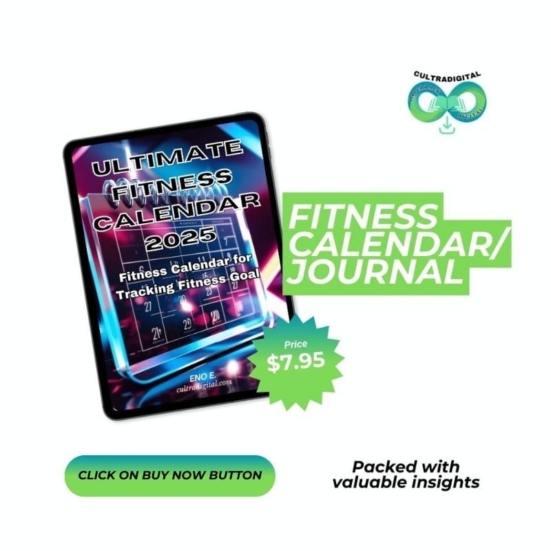 Stay on track with your fitness goals with this printable Ultimate Fitness Calendar 2025 for tracking fitness goals. Track your workouts, meal plans, hydration, and progress with a structured goal-setting planner. Stay motivated with inspirational messages. Perfect for beginners and advanced fitness enthusiasts alike. This downloadable, printable fitness planner helps you build consistency and achieve results. Start your fitness journey today!