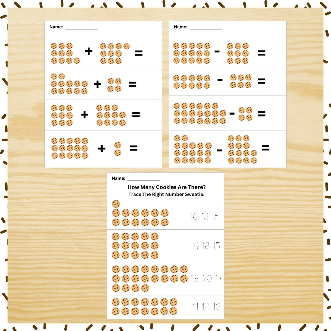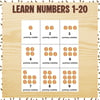 5 learning sheets 10 tracing sheets 6 exercise sheets. Exercises for 1-10 & 10-20 are included.