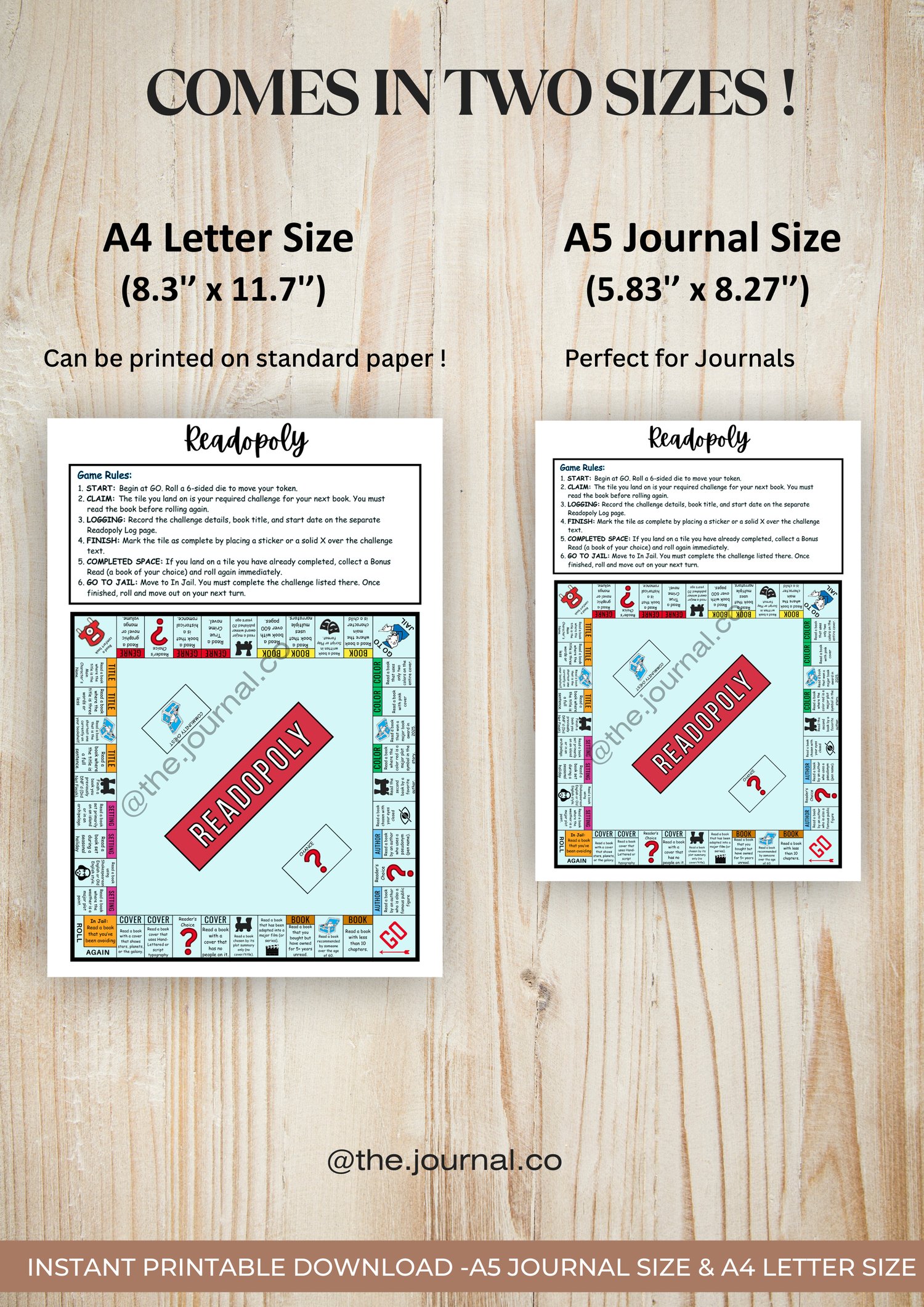 Readopoly : Reading Journal Board Game - A4 Letter Size & A5 Journal Size