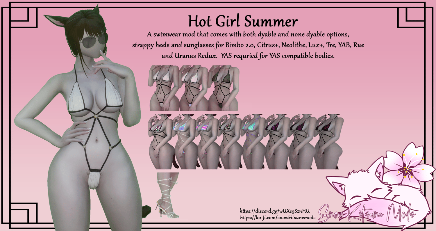 A skimpy one piece with strappy heels and aviator sunglasses (with visor ability and can be adjusted for the perfect fit using c+). This outfit is made from licensed assets, however, the additional presets were done by me using Substance Painter.