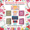 These designs are playful, bright, and friendly — perfect for school parties, treat bags, and Valentine activities that need to stay age-appropriate and joyful.