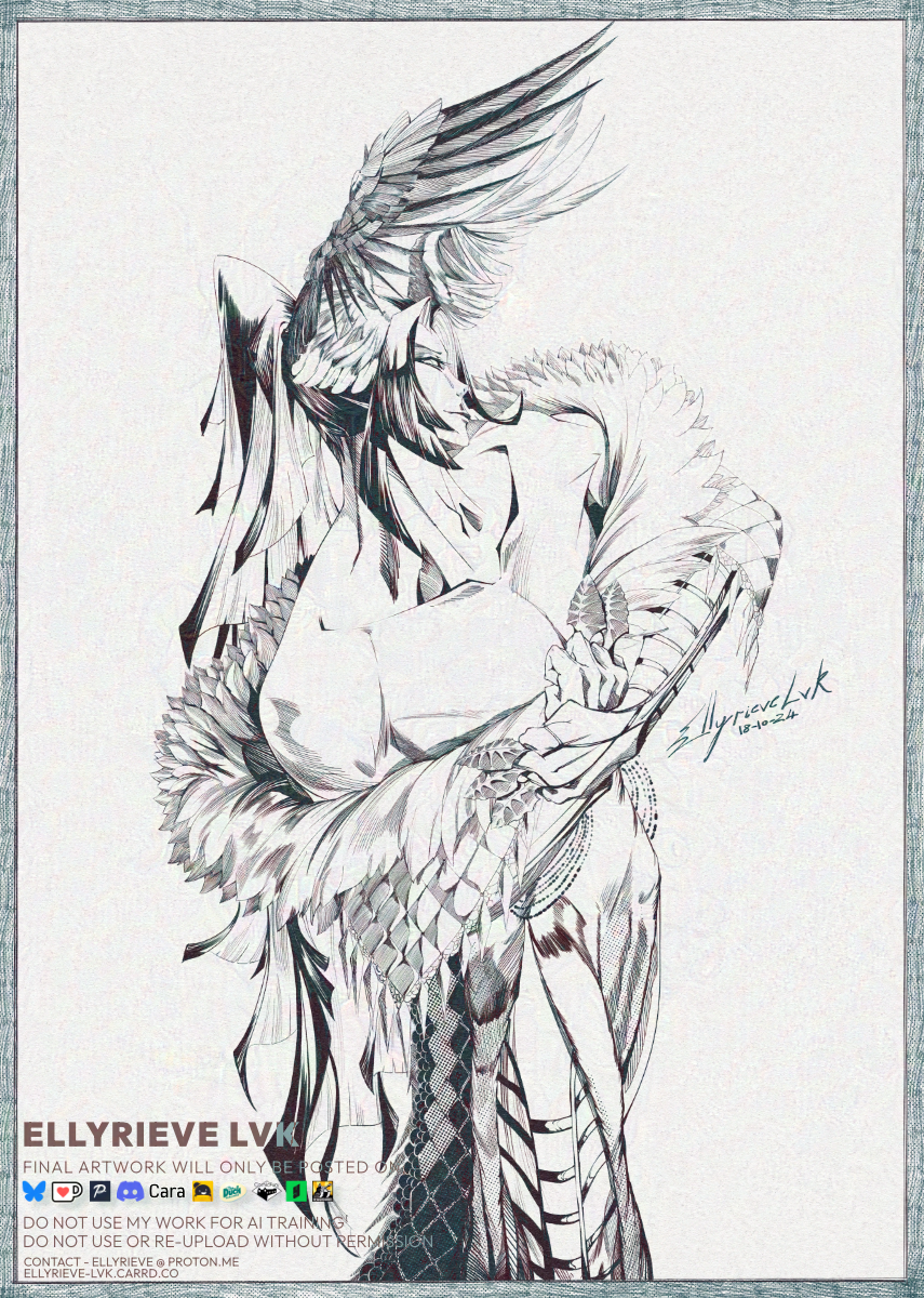 Here are the full resolution art files for Dhalia in the floof dress. Included are the full res (approx 4X7K pixels) pencils, inks and colours.