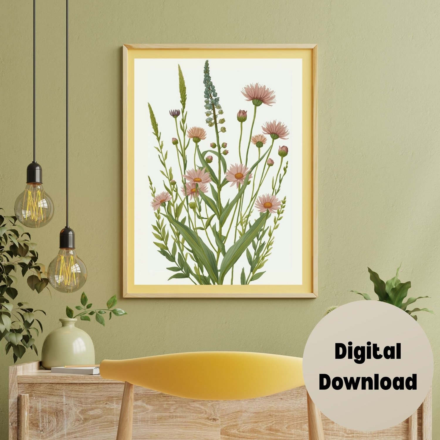 Bring the gentle beauty of nature into your home with this delicate hand-drawn wildflowers illustration. Designed in a soft watercolor style with soothing pastel tones, this artwork captures the timeless charm of vintage botanical prints.