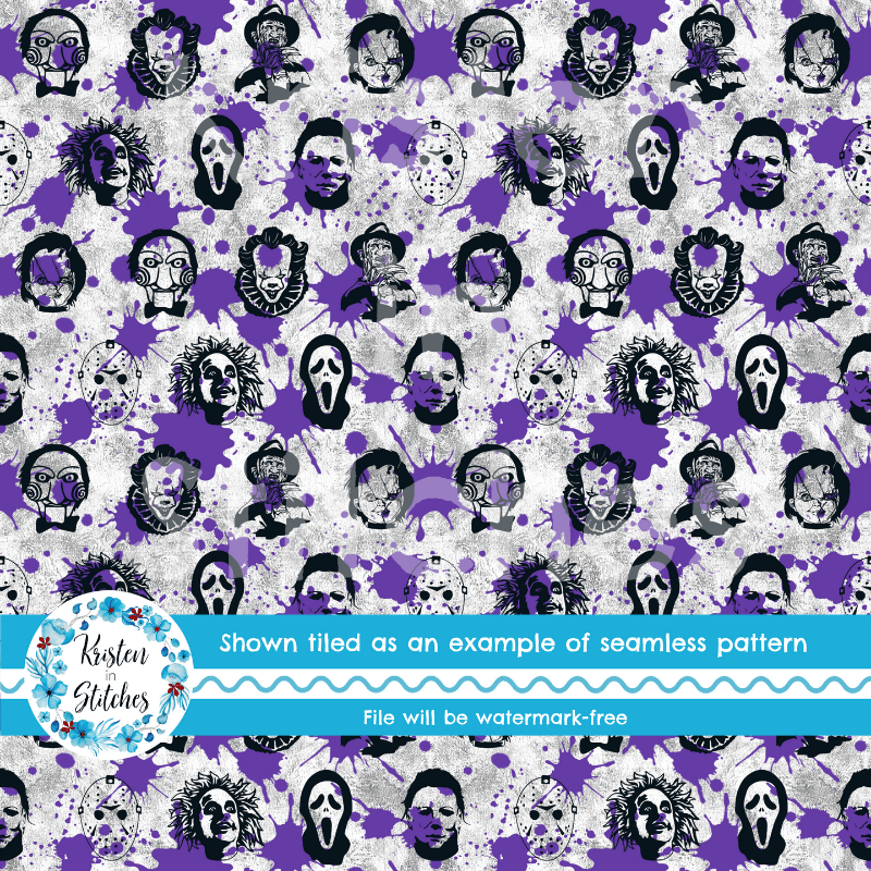 Horror Show Slasher Movie Characters Halloween Seamless Pattern