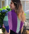 Size – sizes are estimates that will vary with the type of yarn used and the way you block your shawl