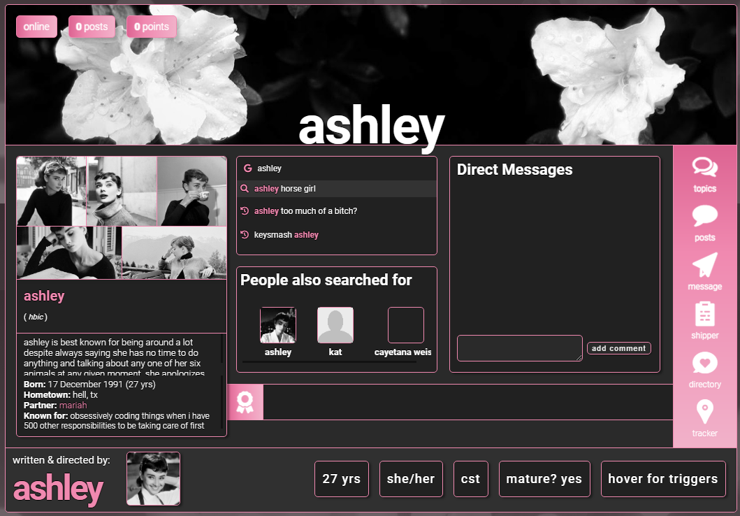 - 1 general template, 2 applications, 2 thread codes, 1 comm code, 1 request code, 1 thread tracker code (will include media-type codes if you are interested in using this for a celebrity site, as it has some celebrity-specific coding)