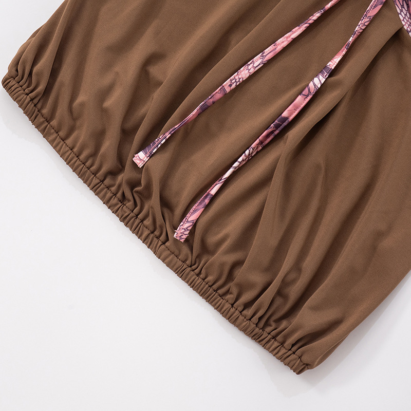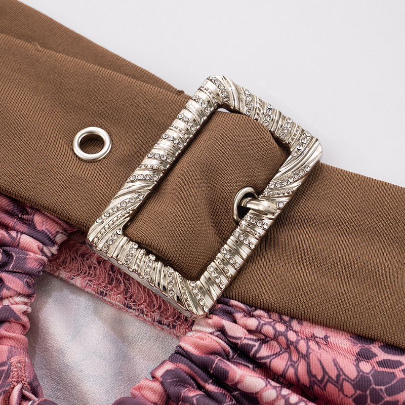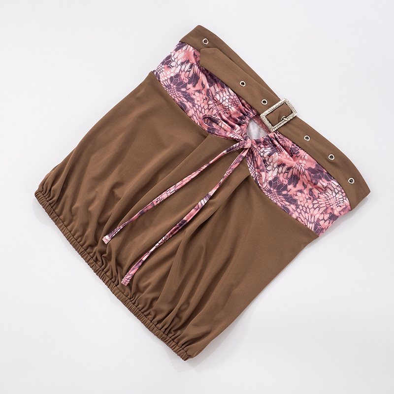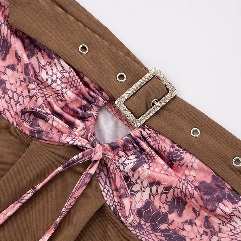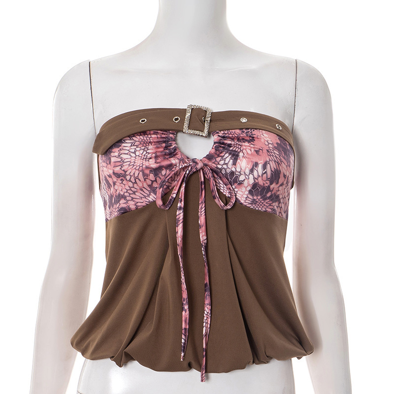 Retro Y2K sexy pink leopard belt spliced hollow brown bandeau
