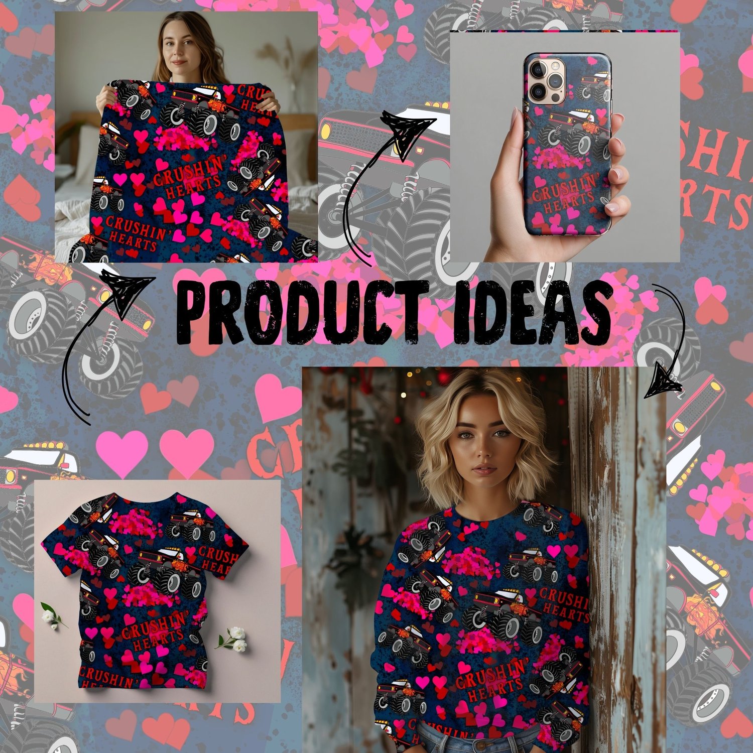 Crushin hearts Monster Truck Valentine Blue