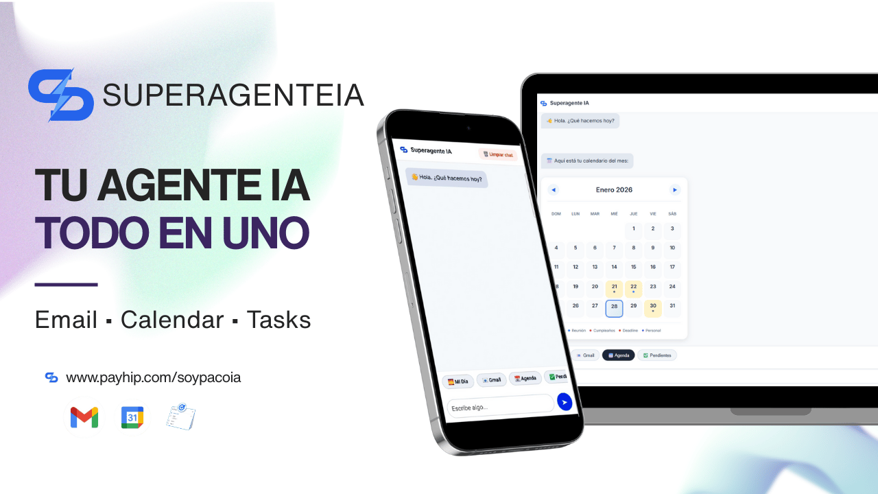 SuperAgente IA - Gmail + Calendar + Tasks en un Solo Chat $147.00 (Ultimos 10 - Precio Fundador)