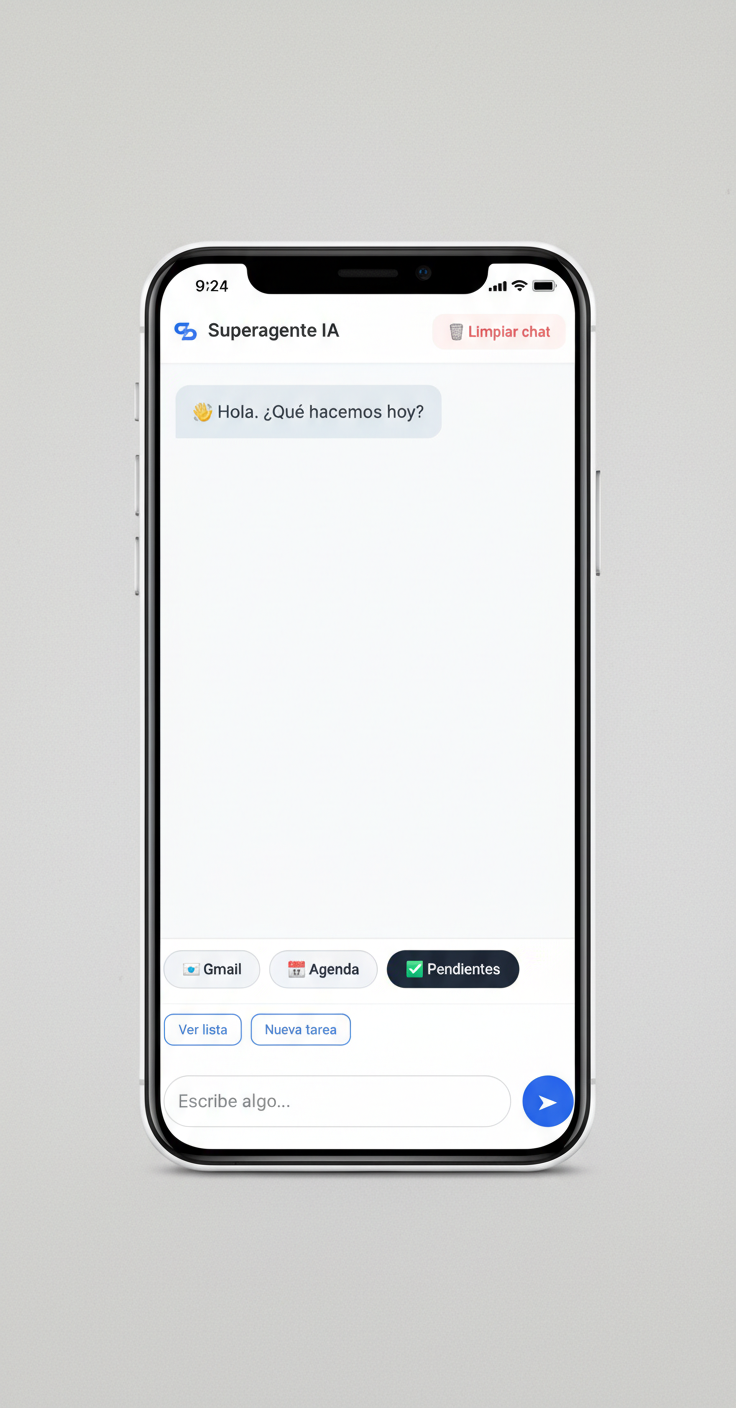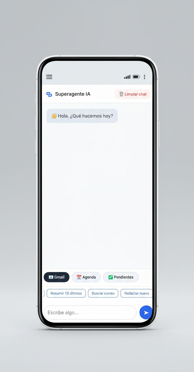 SuperAgente IA es un Sistema Operativo Personal que se instala en tu Google Workspace y te ayuda a operar tu día con claridad y control.