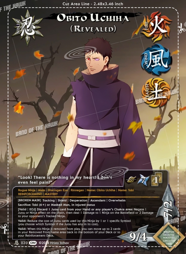 n020 - Obito Uchiha (Revealed) Promo Ninja card from our Obito & Madara card set for Naruto CCG.
