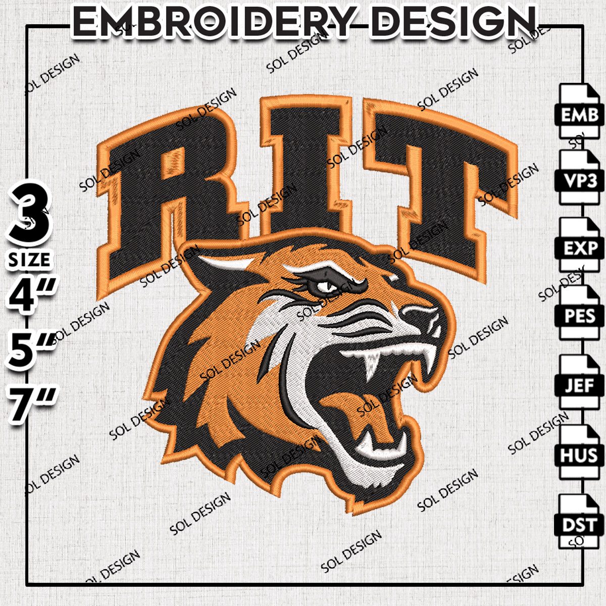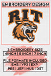 NCAA RIT Tigers Team Mascot Logo Embroidery Designs, NCAA RIT Tigers Machine Embroidery Files, NCAA Logo embroidery designs, Ncaa RIT Logo, Digital Download