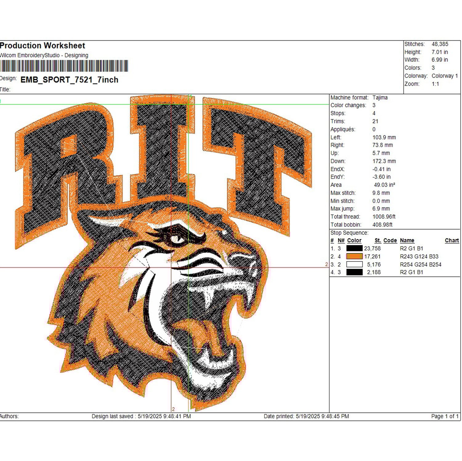 #RITTigers #FootballTeam #MascotLogo #EmbroideryDesigns #NCAA #RIT #MachineEmbroidery #EmbroideryFiles #DigitalDownload #NCAALogo #RITLogo #EmbroideryArt #SportsEmbroidery #TeamSpirit #CustomEmbroidery #CollegeFootball #RITAthletics #LogoDesign #EmbroideryPatterns #RITMerchandise