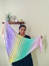 The Matrescence Shawl is a beginner-friendly Tunisian crochet shawl pattern, worked in fingering weight yarn. The sample uses three colours, fading in to the centre and back out again, but the pattern also includes instructions for five colours. This makes it a great stash buster!