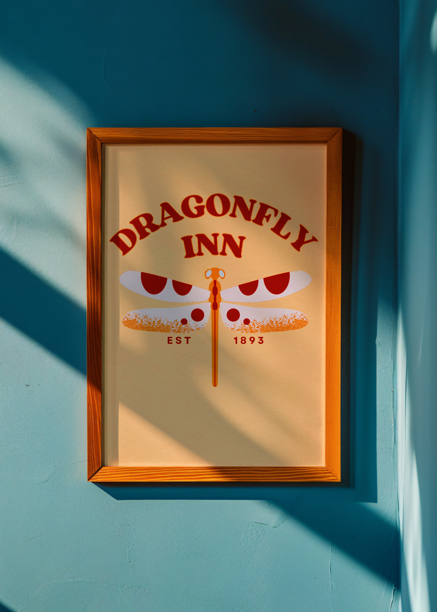 Dragonfly Inn— This warm-toned print captures the rustic elegance of the Dragonfly Inn in full bloom. A soft sunset-orange background glows behind a charming dragonfly with creamy wings edged in burnt red and deep orange—a palette inspired by the golden hours Lorelai and Sookie poured into their shared dream. “Dragonfly Inn” is written in dark red across the top in a nostalgic, hand-drawn font, echoing the classic signs dotting the Stars Hollow square. Est. 1893 sits sweetly below, grounding the design in the inn’s long history and new beginnings. A heartfelt homage to the place that saw Lorelai step into her own power—with a side of antique teacups and quirky charm.