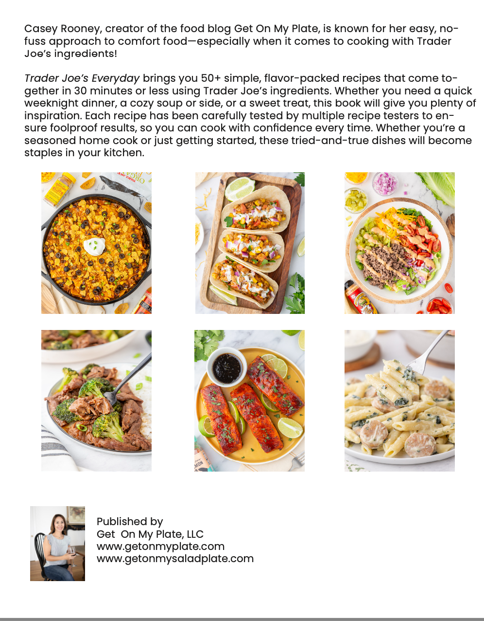 Trader Joe’s Everyday brings you 50+ simple, flavor-packed recipes that come together in 30 minutes or less using Trader Joe’s ingredients. Whether you need a quick weeknight dinner, a cozy soup or side, or a sweet treat, this book will give you plenty of inspiration. Each recipe has been carefully tested by multiple recipe testers to ensure foolproof results, so you can cook with confidence every time. Whether you're a seasoned home cook or just getting started, these tried-and-true dishes will become staples in your kitchen.