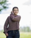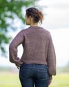This cropped pullover has a fun and simple textured stitch pattern and nice oversized sleeves. It is knitted with a fingering weight yarn held together with lace weight silk mohair to achieve a sport weight gauge. It is a stylish chic sweater that goes with high-waist jeans and nice skirts. The pullover can be easily modified into a longer version if preferred or sleeves can be shortened or shaped to smaller. Video tutorial link on knitting the neck is included.