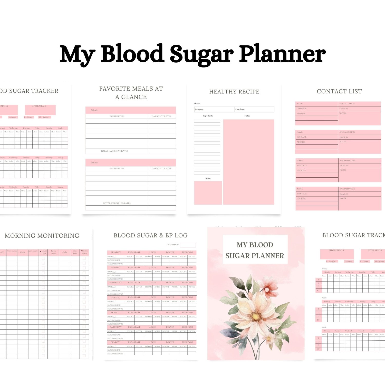 Our Blood Sugar Tracker is designed to help you keep a close eye on your blood sugar readings, whether you choose to use it digitally or print it out for convenience. With dedicated sections to record your glucose levels, along with the date and time of each reading, you can effortlessly track your blood sugar trends and identify patterns over time.