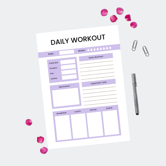 Add this beautiful Printable Daily Workout Planner in your Daily life to manage your daily exercise routine.