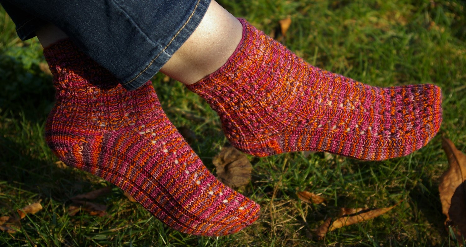 There’s just something about sportweight sock yarn that makes me so happy. It might be that the knitting goes just a little bit faster, so I’ve got a finished pair of socks in less time. It may be that the Oink Sport is so bouncy and fun that my feet feel joyful and springy. Maybe the colorways of sock yarns just spark my joy. Whatever it is, these socks are some of my new favorites. They have a little zip in the eyelet ribbing and a bit of cling in the sole, with a short row heel that hugs the heel and a modified toe that keeps its shape. I named them “jazz feet” because they make me feel like dancing!