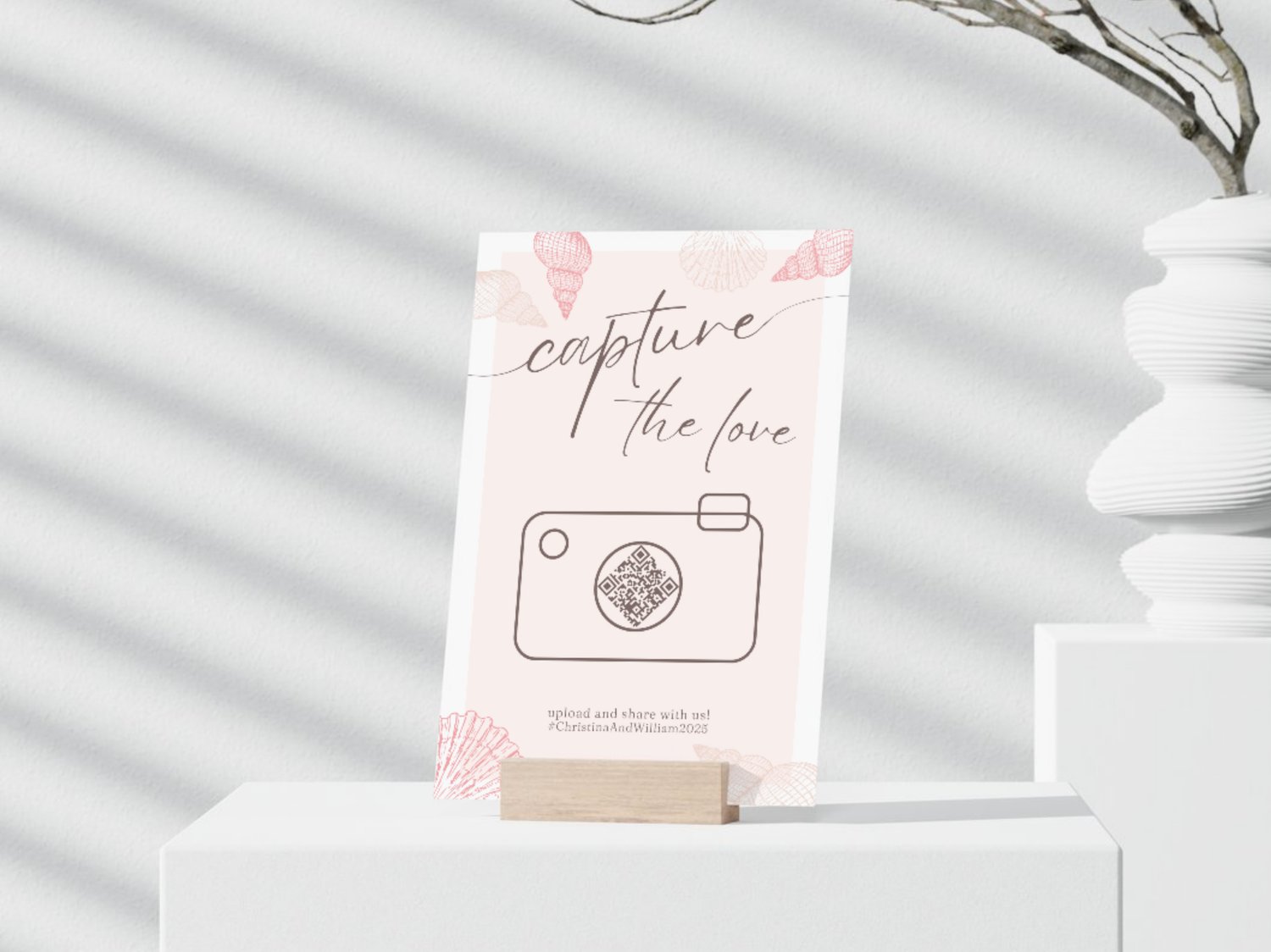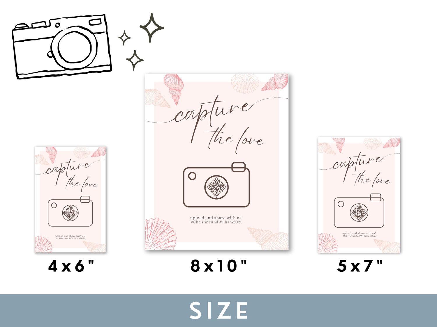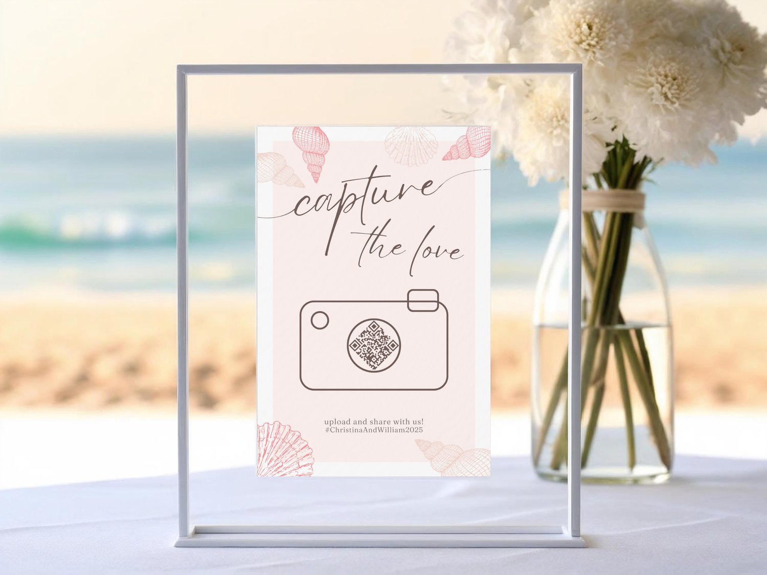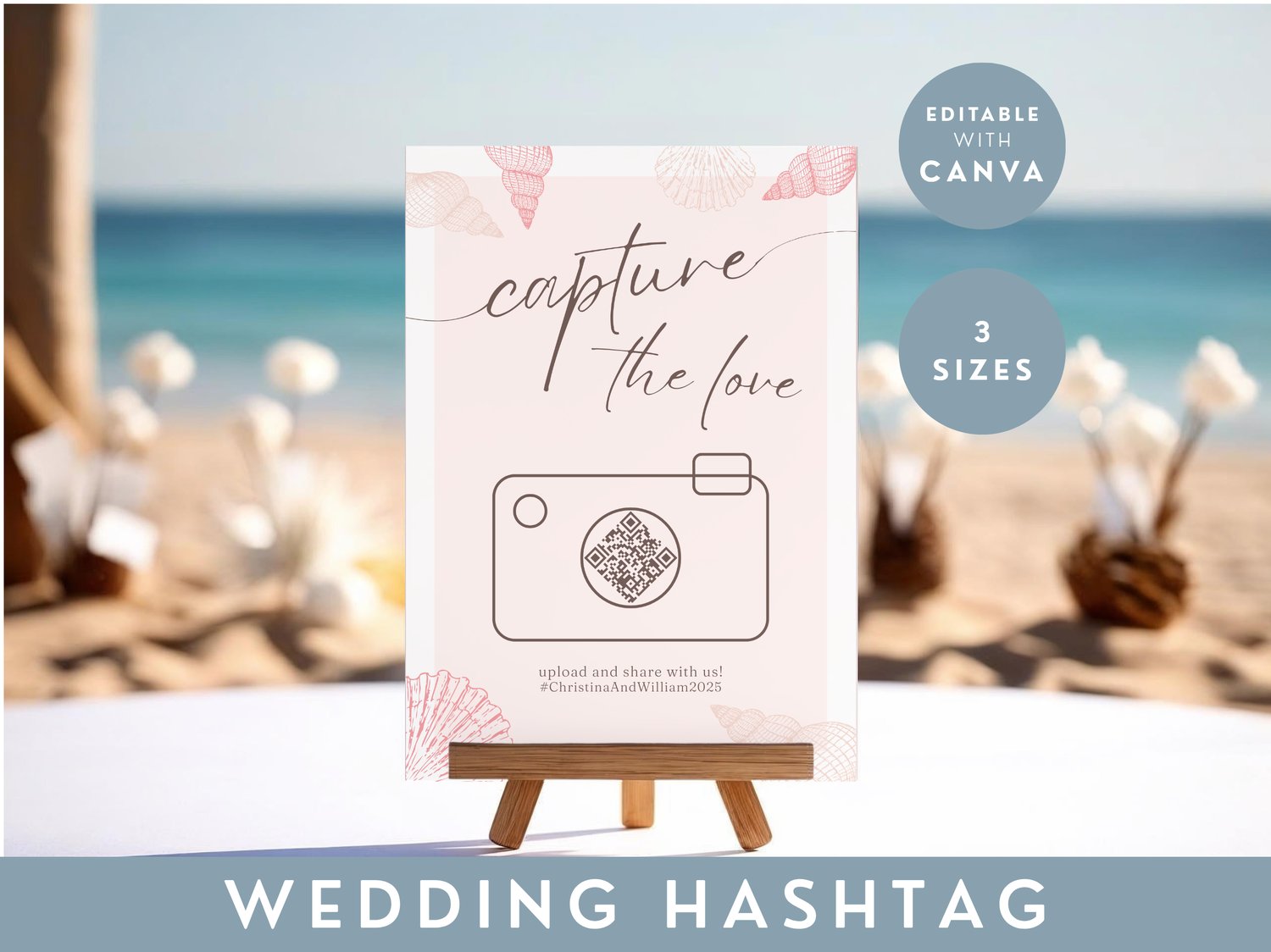 Beach Wedding QR Code Sign Summer Canva Template Capture The Love Printable Photo Sharing Sign For Wedding Guest Table Editable Sign 004