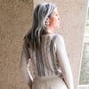 Mearon has an interesting, seamless construction, with elegant and decorative details. You will start with a provisional cast on at the upper arm. Then the body is worked sideways to the center back and front. The body is constructed using a double-sided provisional cast on for an invisible side seam. Once the right and the left half of the sweater are worked, they are joined by a modified three needle bind off for a flat center front and back seam. The sleeves are worked down in the round, so you can try on your sweater for a perfect sleeve length. Then stitches are picked up for the finishing of the lower edge and the neckline and worked in the round to the bind off.SIZES