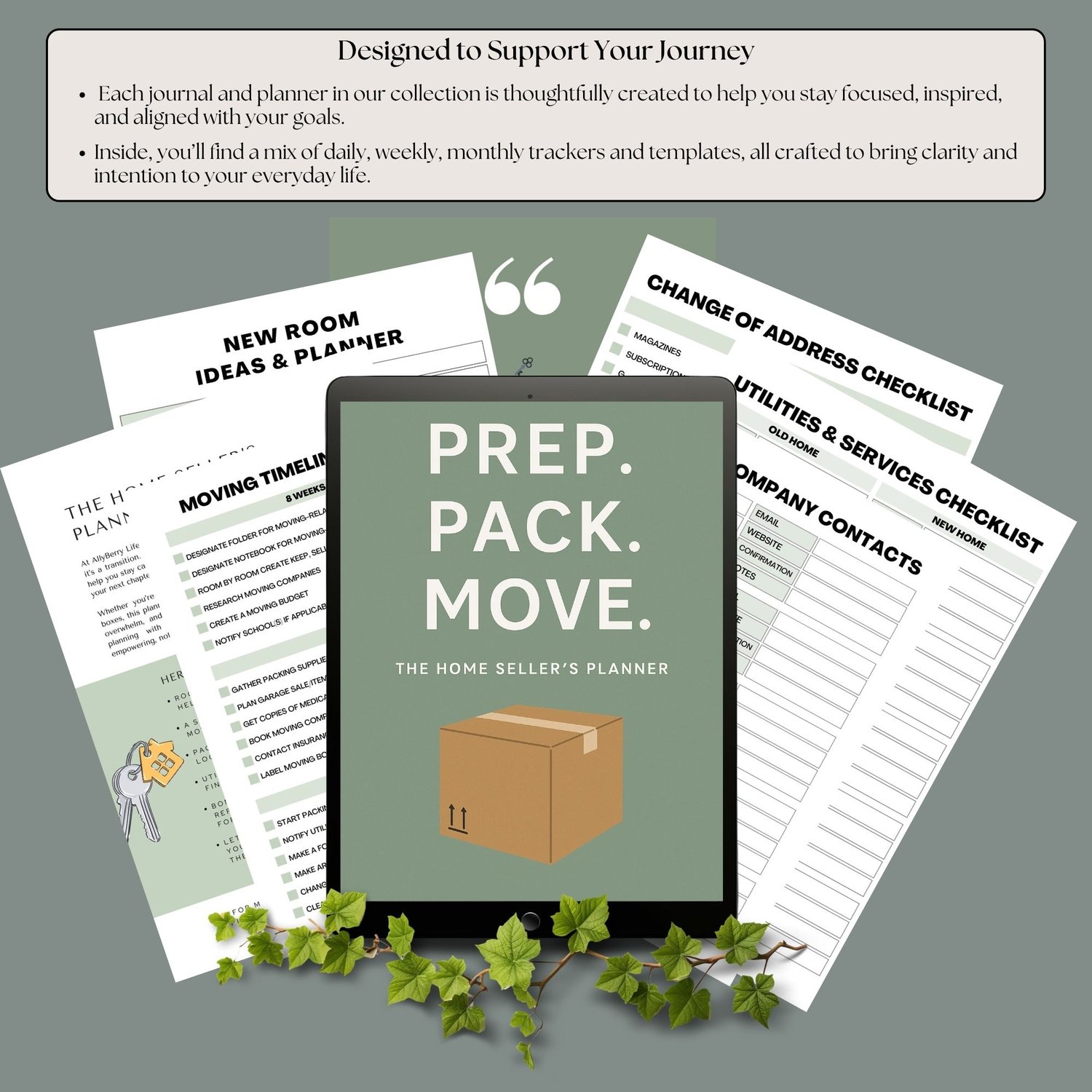 Prep. Pack. Move. is a beautifully designed home-selling and moving planner created to help you stay on top of your timeline, reduce overwhelm, and turn chaos into calm. Whether you're just beginning to prepare your home for sale or deep into packing boxes, this printable planner keeps you focused and in control.