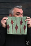 Shown in The Blue Brick Escarpment DK in shade ‘Cabbage’ [280yd/256m per 4oz/114g; 100% Merino] & Countess Ablaze Grande Merino DK in shade ‘1999 Humvee Pickup: Tracey’ [246yd/225m per 4oz/115g; 100% Merino]