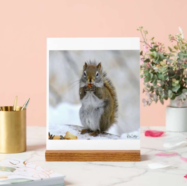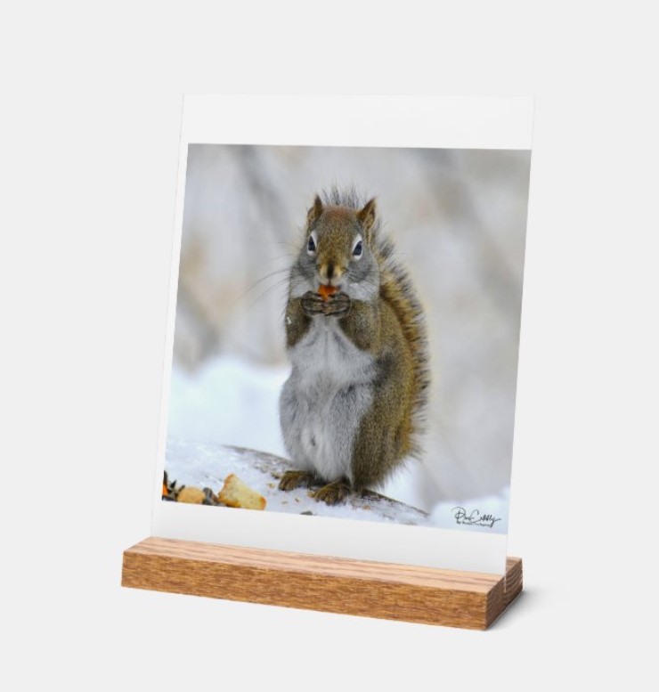 Ken again! This photos is 10 x 10". It is another taken in January 2025. Ken is such a sweet little squirrel and always seems to be smiling. Such a busy boy with lots to do - burying nuts - finding them again and eating them!