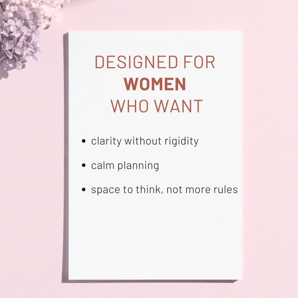This planner was created for women who want calm structure, without pressure, perfection, or rigid systems.