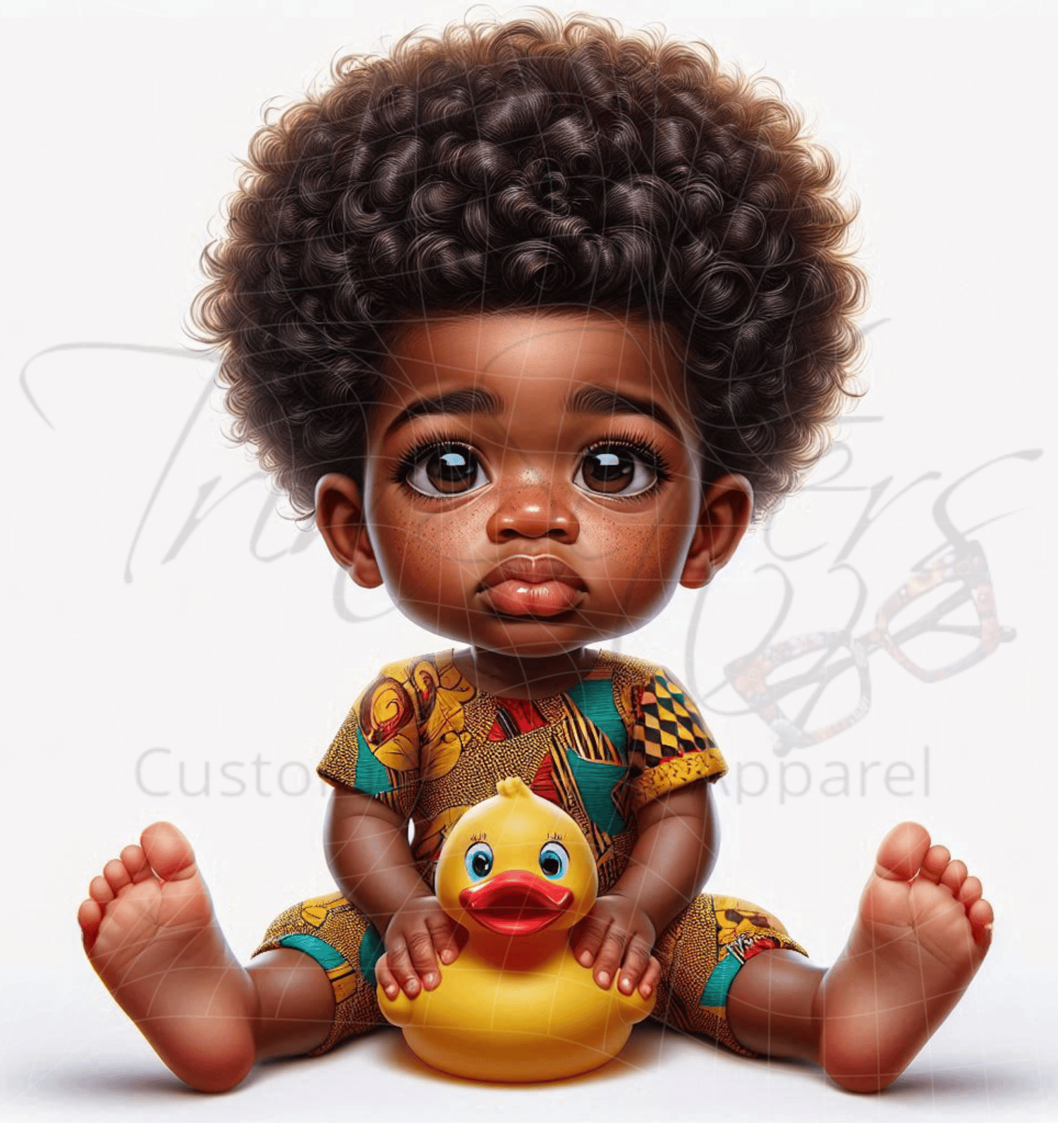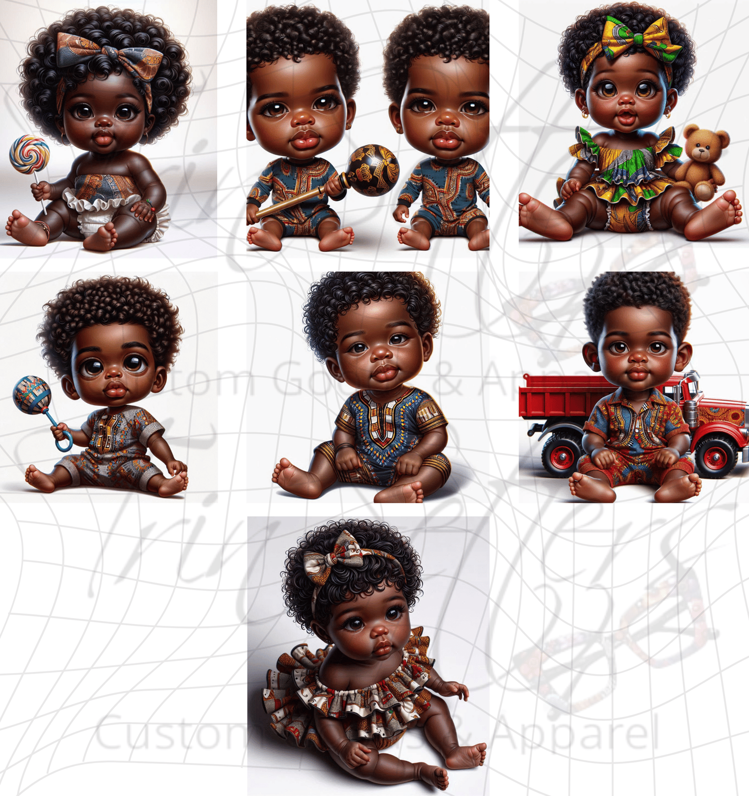 Welcome to the Ankara Cuties Collection—a heartwarming series of digital illustrations featuring adorable babies dressed in vibrant, traditional Ankara prints. These high-quality PNG downloads are perfect for adding a touch of cultural flair to your creative projects, whether crafting personalized gifts, designing apparel, or creating custom digital art. Each image captures the innocence and charm of childhood, combined with the rich, bold patterns of African textiles.