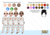 three different skin tones, three eye colours and 16 hair colours