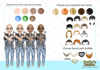 four different skin tones, three eye colours and 6 hair colours)