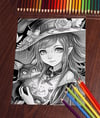 Witchy Darling Cute Girl Coloring Page, Adults & kids- Instant Download - Grayscale Coloring Page - Gift, Animal coloring page, Child PDF