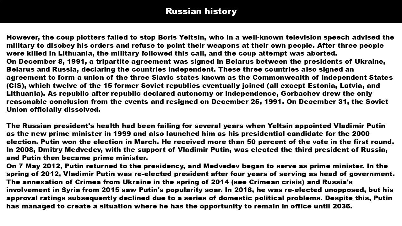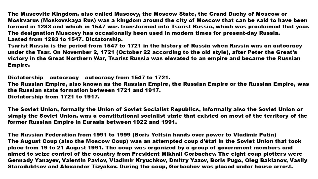 The Russian people have no tradition of appreciating Democracy or understanding how it works.