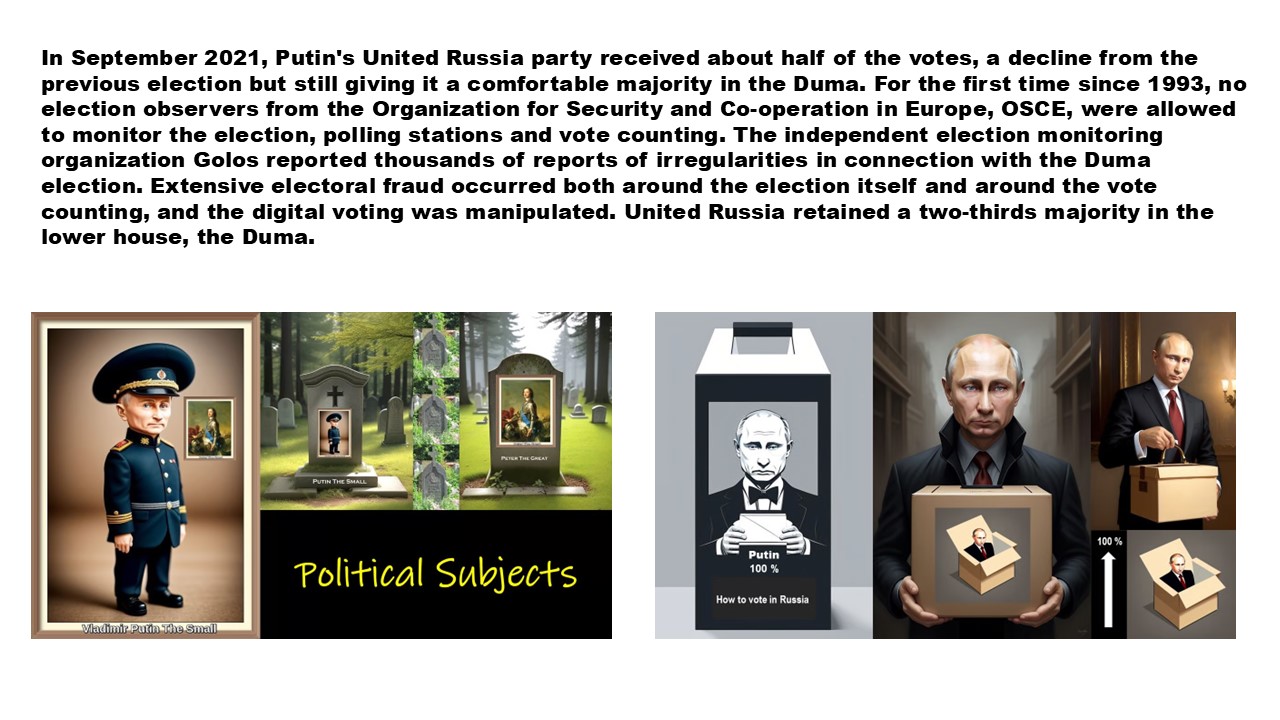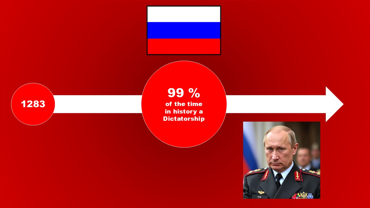 During Vladimir Putin's Era, Russia can be considered a dictatorship. Political opponents have been murdered or imprisoned, or threatened if they stood for election. The elections that are organized do not meet the requirements of a democracy.