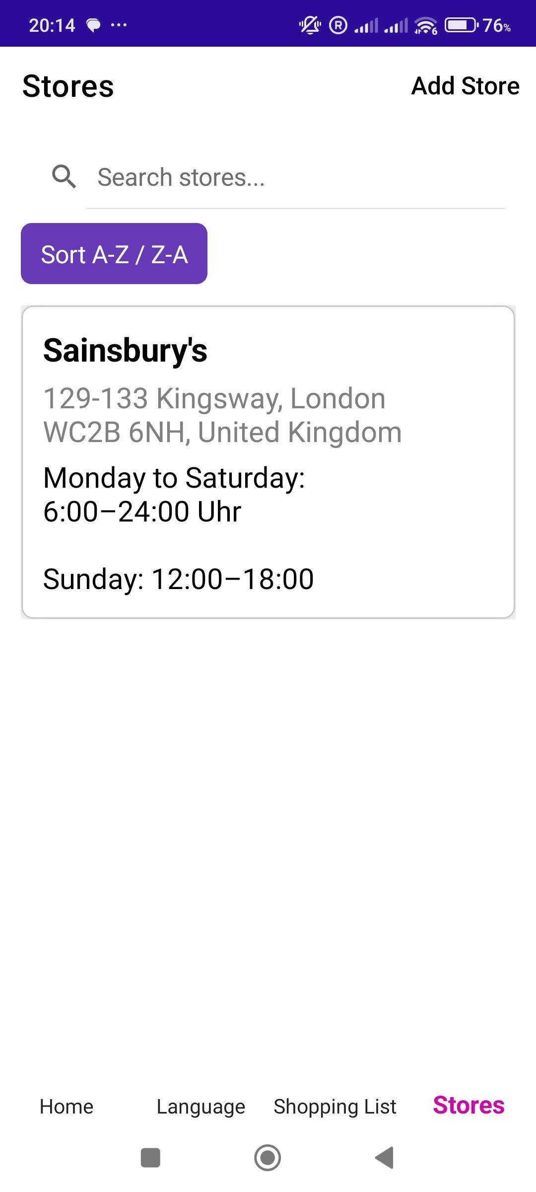 The app works like a normal shopping list, but also a little like a to-do list. It helps you finish your shopping faster and without stress.