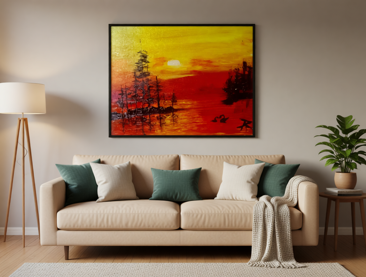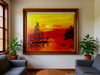 Ember Glow is a digital print of an original painting by Anthony Reeves (ReevAnth). The work focuses on contrast and atmosphere—light against shadow—built intuitively rather than around strict color accuracy.