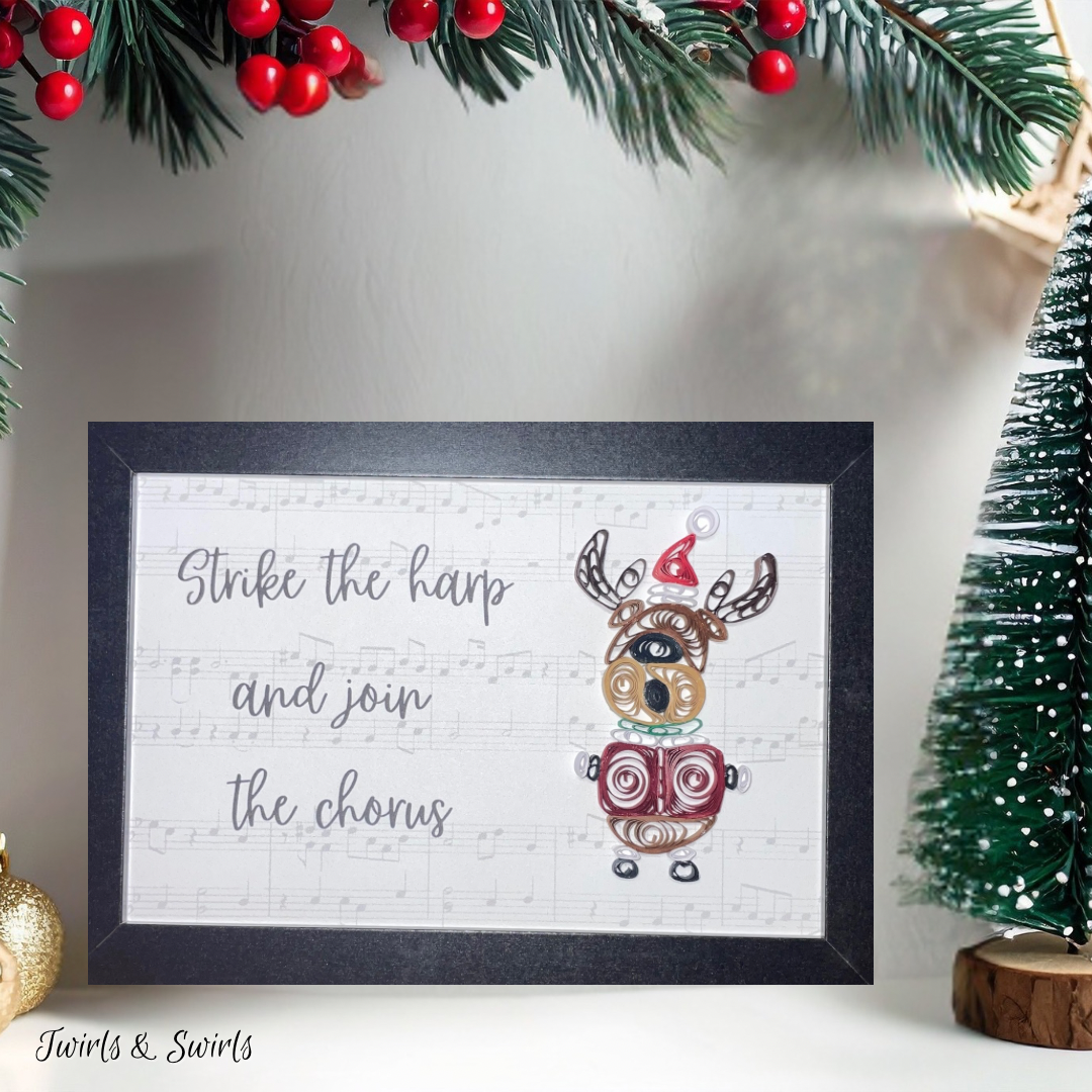 Add a cheerful note to your holiday décor with this handcrafted quilled reindeer, ready to “strike the harp and join the chorus!” Each swirl of paper captures the playful spirit of Christmas caroling and the joy that fills the season.