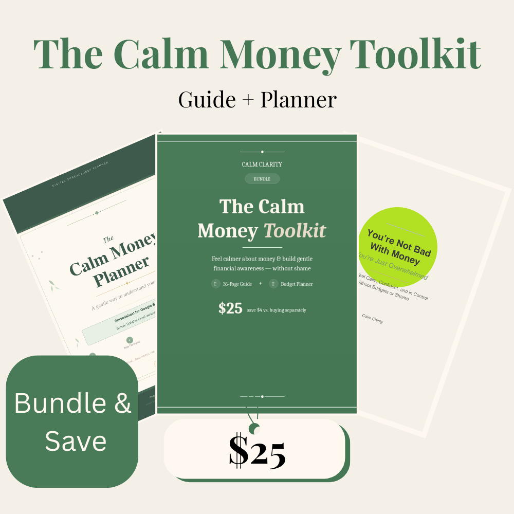 The Calm Money Toolkit is a thoughtfully designed bundle for people who want to feel calmer about money and build financial awareness without pressure or shame.