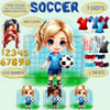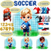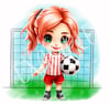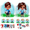Football/soccer bundle with optional numbers for birthdays. Chibi Girl & boy on watercolour background -hair, shirt, shorts clipart. PNGs