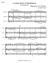 This trumpet trio version of the popular Christmas carol begins with tag team duets for the first verse (in the key of F/E flat concert). Then there is an interlude going into the second verse, which is reharmonized in the relative minor (D/C concert minor). The last chord of the second verse is D7 which is used for a quick modulation to G/F concert in the last verse. There is an amen tag at the end.
