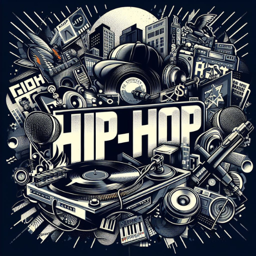 Celebrate the pulse of urban life and hip-hop culture. Download this striking collage artwork today!